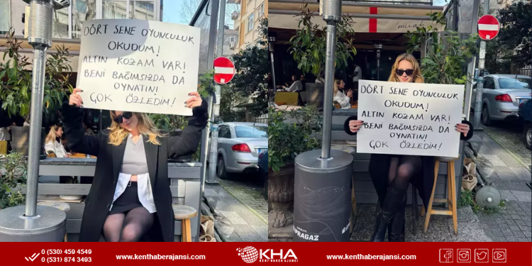 yazılı pankartla kamera karşısına geçen oyuncu, oyunculuk yapmaya duyduğu özlemi gözler önüne serdi.