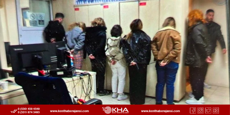 Gözaltına alınan şahısların emniyete elleri arkadan kelepçeli şekilde getirildiği, çekilen görüntülerde yüzlerini duvara dönük şekilde bekletildikleri görüldü.