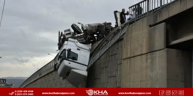 Kaza, saat 10.00 sıralarında Ankara Caddesi 4 Sanayi Üst Viyadüğü’nde meydana geldi. Bornova’dan Alsancak Limanı yönüne giden İrfan Öngen’in kullandığı 06 FGT 332 plakalı taş yüklü TIR, yağmur nedeniyle kayganlaşan yolda sürücüsünün direksiyon hakimiyetini kaybetmesiyle devrildi. TIR’ın kupası viyadüğe asılı kalırken, şoför Öngen ise yaralandı.
